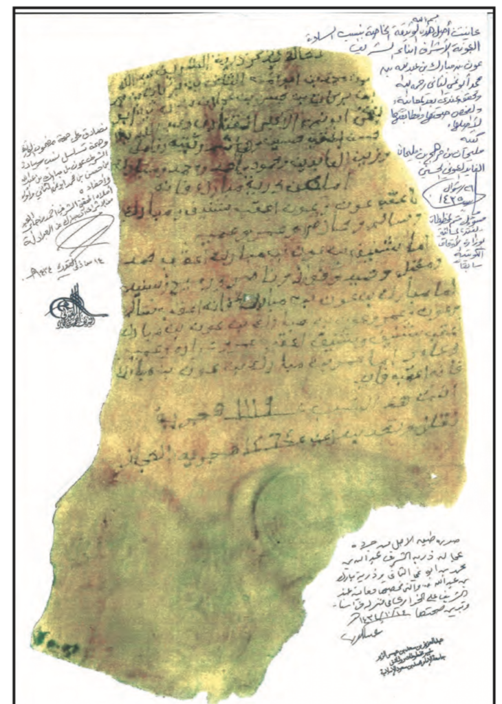 التقارير العلمية عن وثيقة الشريف عون بن مبارك الجد الجامع للأشراف العونة العبادلة .
